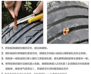 目前常用的方法就是貼片內(nèi)補法,先檢查輪胎的破損位置,然后仔細(xì)平整破損處,在孔洞周圍涂上膠水,將專用的橡膠貼片貼在破損處并壓緊牢固,然后涂上一層保護(hù)膠,完成輪胎的修補工作,這種方法與自行車上常用的輪胎修補方法基本一致。這種方法的缺點是,損壞的部件容易被雨水等污染物腐蝕,只有輪胎內(nèi)部才能修復(fù),輪胎完成后,應(yīng)進(jìn)行動態(tài)平衡校準(zhǔn)。但通常效果很好,價格不超過100元。