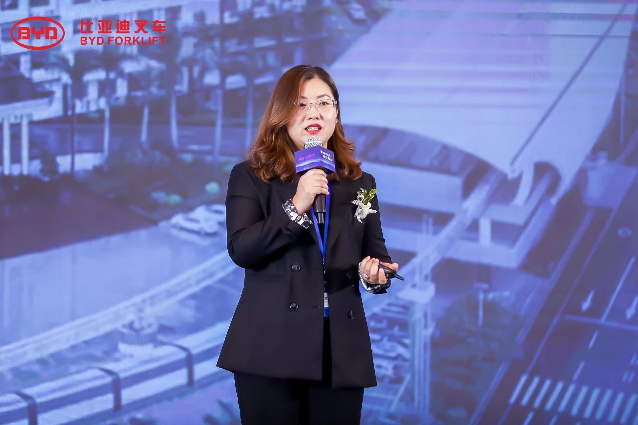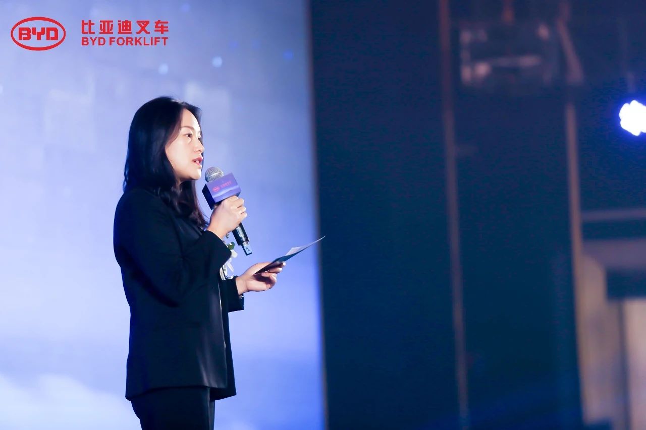 大會現場“高朋滿座,濟濟一堂”,比亞迪叉車國內銷售總監(jiān)陳麗萍女士首先向在座來賓致歡迎辭。