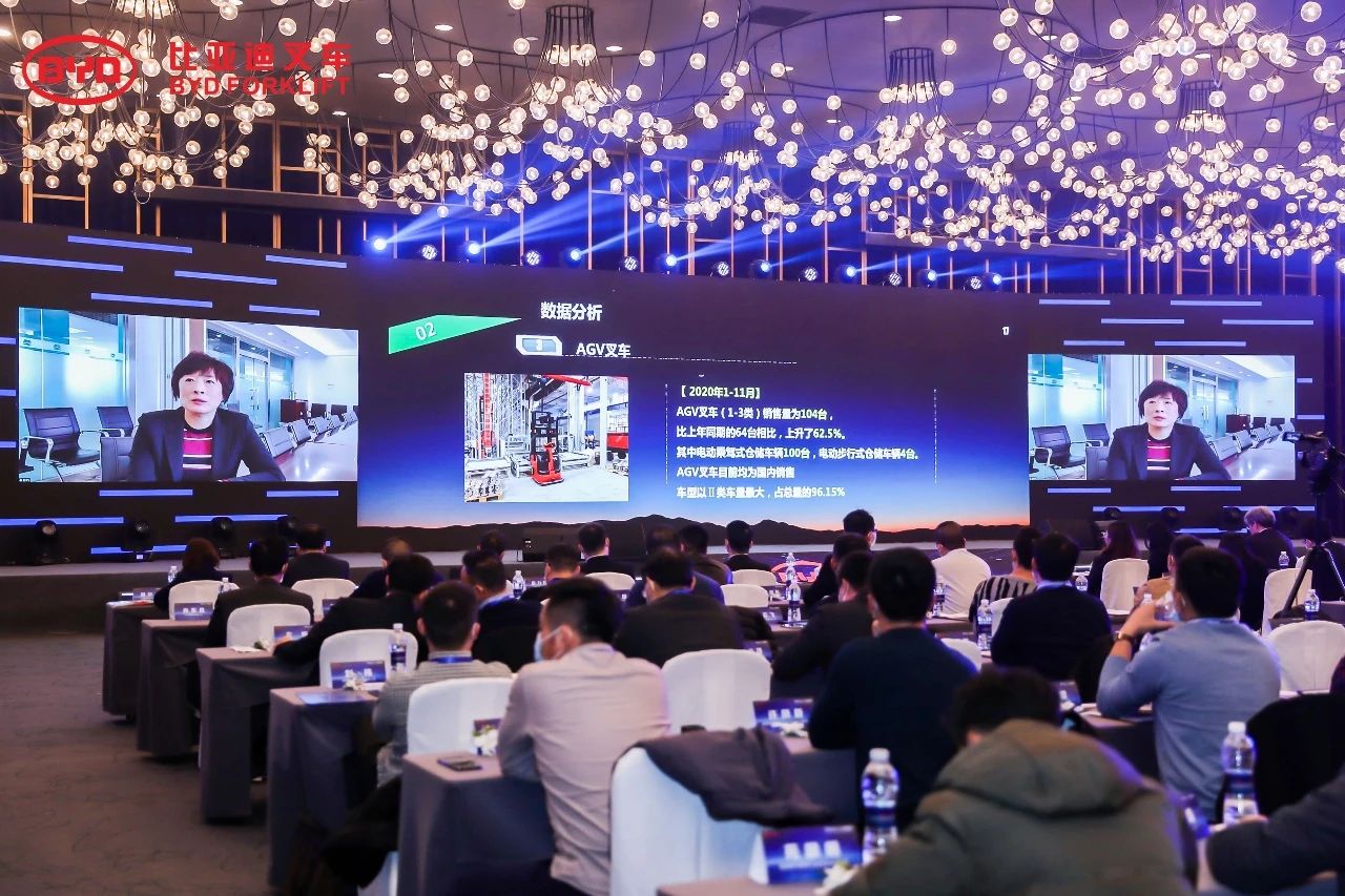 中國工程機械工業(yè)協會工業(yè)車輛分會秘書長張潔女士隨后通過現場連線的方式,就2020年工業(yè)車輛市場概況做精彩分享。