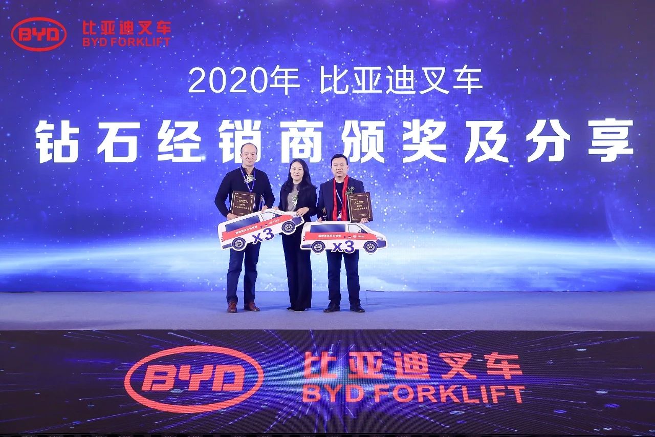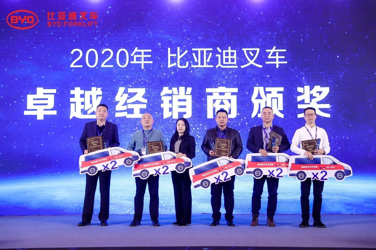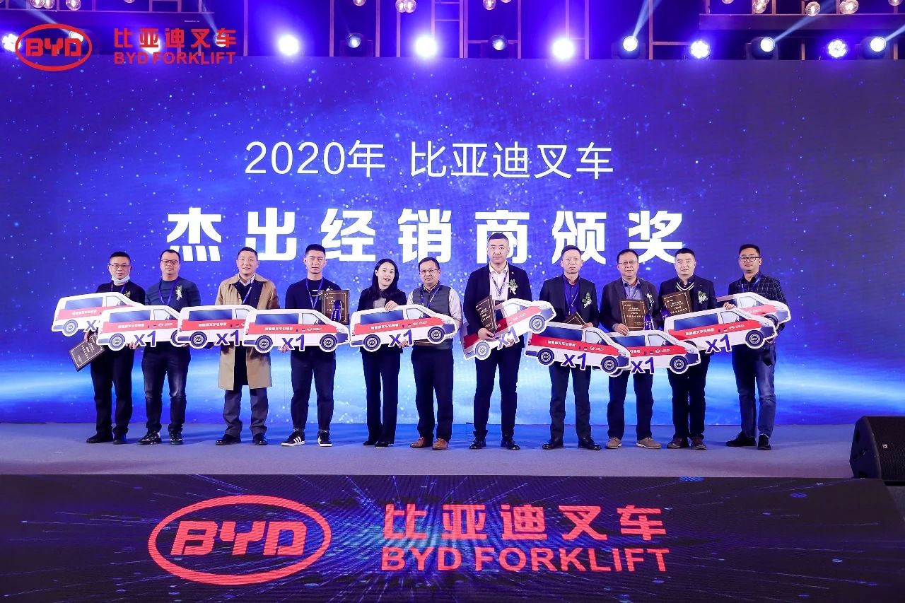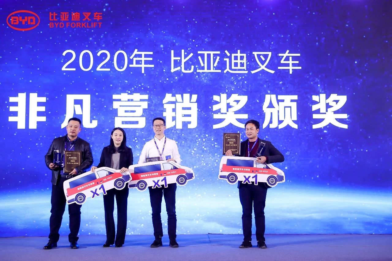 大會同時頒發(fā)了非凡營銷獎、卓越經銷商獎項,也對在2020年銷售業(yè)績表現突出的經銷商進行了獎勵,以感謝他們對比亞迪叉車發(fā)展做出的杰出貢獻。