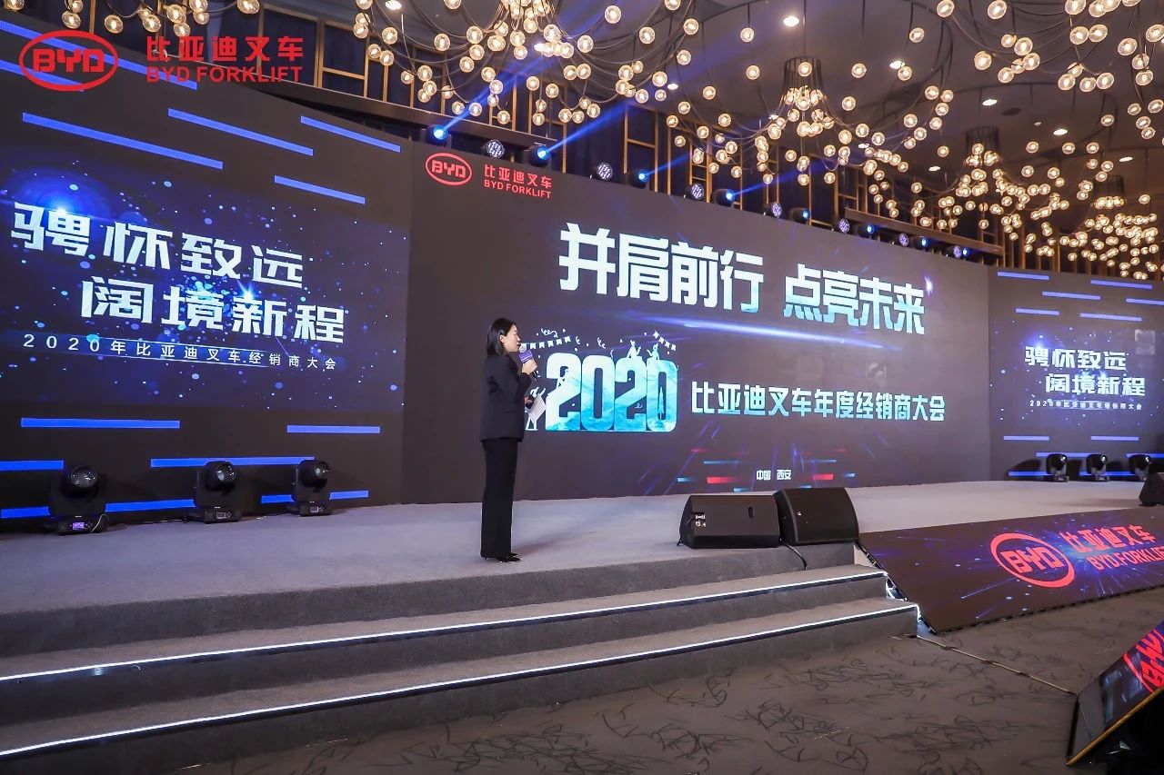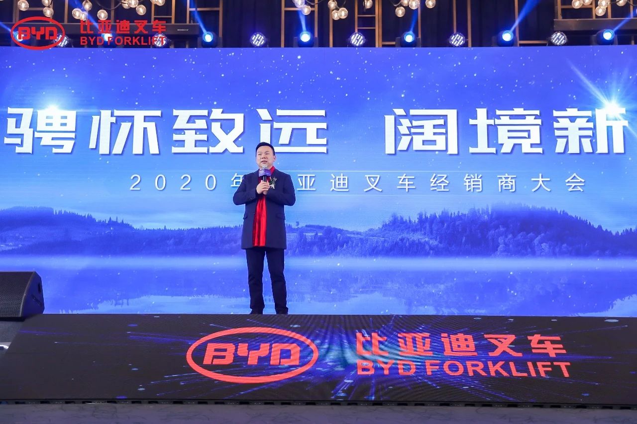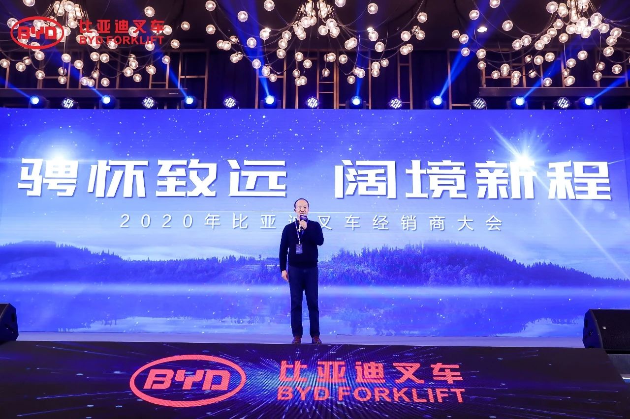 1月6日,以“騁懷致遠,闊境新程”為主題的2020年比亞迪叉車經銷商大會在陜西西安隆重召開。比亞迪叉車總經理畢國忠先生與事業(yè)部各高層領導,以及全國各地的杰出經銷商代表、行業(yè)協會、媒體朋友們歡聚一堂,共同分享喜悅、見證榮耀,展望新能源叉車的未來發(fā)展宏圖。