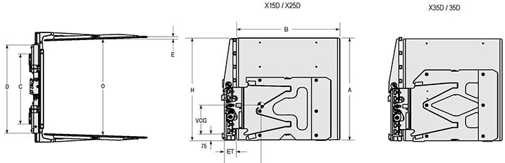 Capacity 承載能力(kg) Catalog Order NO 型號(hào) Mounting Class 安裝等級(jí) Opening Range張臂范圍(mm)Arm Height臂高A(mm)Arm Length臂長(zhǎng)B(mm)Vertcial Center Of Gravity垂直重心VCG(mm)Load Center載荷中心(mm)Overall Width總寬D(mm)Hook Spread上鉤外側(cè)間距(mm) Weight 自重(kg) Effective 失載距ET(mm) Horizontal Center of Gravity 水平重心CGH(mm)