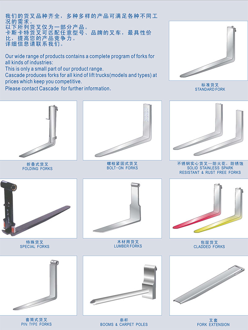 卡斯卡特貨叉(Forks)_叉車配件_配件供應中心_產(chǎn)品中心_廈門永新昌機械設備有限公司
