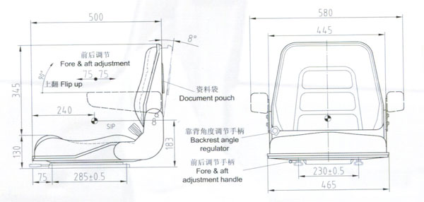 座椅為叉車及其它工業(yè)車輛設計的經濟型駕駛員座椅。它沒有懸浮裝置。但其座背、靠背均采用真空發(fā)泡一次成型技術,便于拆換。